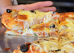 ピザっていうとイタリアンピザのお店が多いけど、ジャンボリーさんは本格的アメリカンピザのお店☆たっぷりの具や、とろ~っと伸びるチーズがおいしそう…(*´∀`)ピザを囲んでみんなでわいわいとパーティーすると楽しそうですね♪