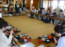 と、明るく語る哲弘さん。辻徳法寺さんでは、お母様の順子さんと奥様の栄子さん手作りの精進料理と、肩のこらない法話をセットにした「精進カフェ」(年2回)や、まちおこしイベントなどの企画に積極的に取り組んでおられます。また、無料で休憩できるまちの案内所「まちの駅」のネットワークにも参加しとられます。
