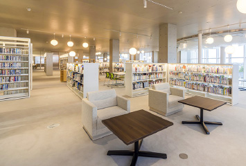 図書館は3階と4階にあり、3階は主に児童書や子育てに関する本、4階は小説や実用書などの一般書が並んどります。旧図書館よりも開架図書が多くなったがで、これまで書庫にあったような本も自由に閲覧できるようになったがですよ。館内には、あちこちに椅子やソファが置いてあるがで、本に囲まれながらゆっくり読書を楽しめます。集中したい人向けの学習室や、お話ができるグループ向けラウンジなどもあり、目的に応じて自由な過ごし方ができるがです。